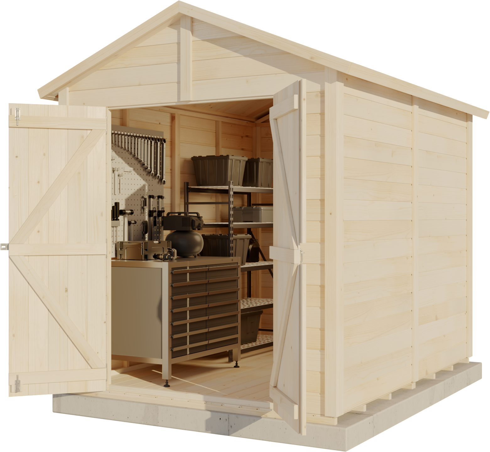 Storehaus Redskabsskur med saddeltag og dobbeltdør 246 x 186 cm